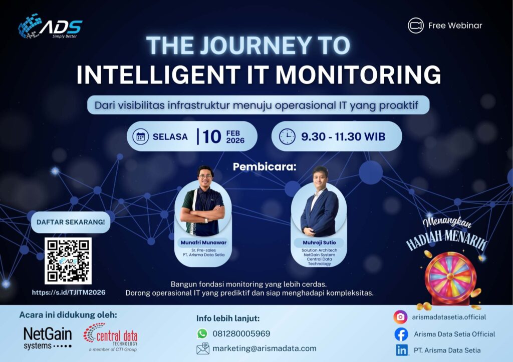 Melalui webinar “The Journey to Intelligent IT Monitoring – Dari Visibilitas Infrastruktur Menuju Operasional IT yang Proaktif”, peserta akan diajak memahami perjalanan transformasi monitoring IT:
