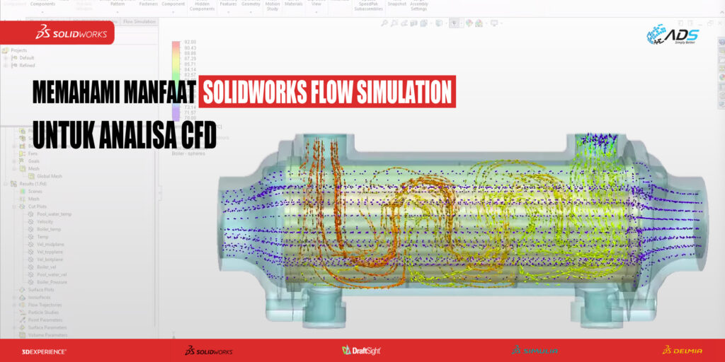 Untuk mendukung kebutuhan tersebut, SOLIDWORKS menyediakan SOLIDWORKS Flow Simulation sebagai solusi komprehensif untuk analisa CFD. Dengan integrasi langsung di dalam interface SOLIDWORKS, engineer dapat melakukan simulasi aliran fluida, perpindahan panas, hingga aerodinamika tanpa harus berpindah software. Keunggulan tersebut menjadikan proses desain dan analisa lebih cepat, efisien, dan praktis. Sehingga membuat iterasi produk bisa dilakukan lebih sering tanpa mengganggu alur kerja.