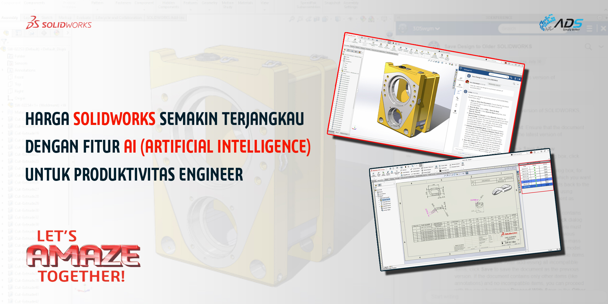 SOLIDWORKS Design, sebagai industry-standard 3D CAD solution yang digunakan oleh jutaan engineer dan manufacturing professional di seluruh dunia, kini hadir dengan peningkatan signifikan. Tidak hanya menawarkan peningkatan fitur pada 3D modeling, tetapi juga dilengkapi fitur Artificial Intelligence (AI) dan advanced CAM tools yang sebelumnya memerlukan lisensi terpisah. Hal tersebut menjadikan SOLIDWORKS Design semakin menarik bagi engineer, programmer CNC, manufacturing engineers dan juga para manager perusahaan manufaktur yang ingin bekerja lebih efisien dengan biaya lebih hemat.
